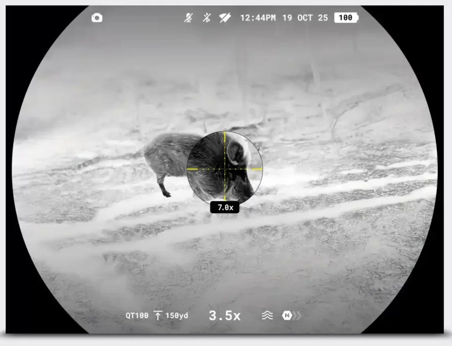 Также посетители выставки имели возможность увидеть новый тепловизионный прицел Pulsar Trail 3 LRF XR50. Этот компактный прицел на матрице 640х480 со встроенным лазерным дальномером и баллистическим калькулятором способен обнаружить человека на расстояниях до 2300 м. Картинка-в-картинке теперь имеет круглую форму и располагается по центру прицельной сетки. Прибор собирается на недавно открывшемся в Латвии заводе Pulsar.